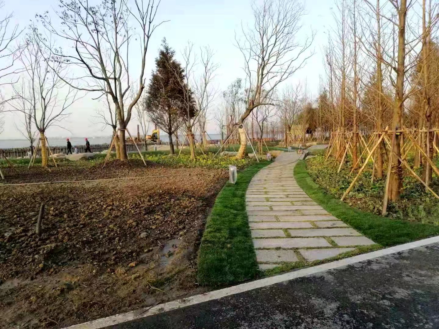 该项目选用黄色仿金山石复古砼石,大量应用于园路、步道和广场。既符合贴近自然的风格需求,又充分尊重和沿袭了当地传统石材使用习惯。